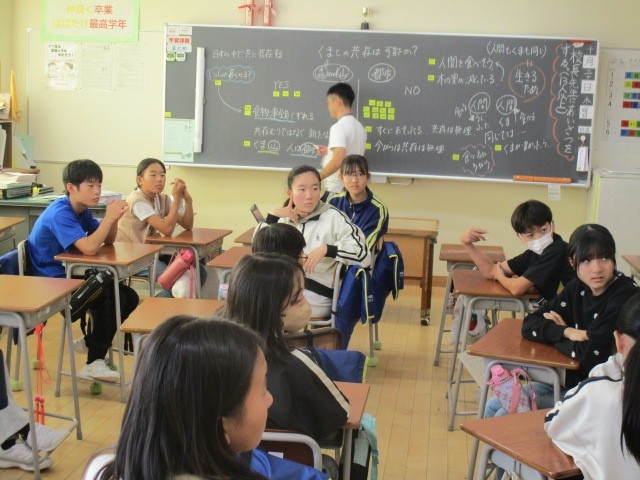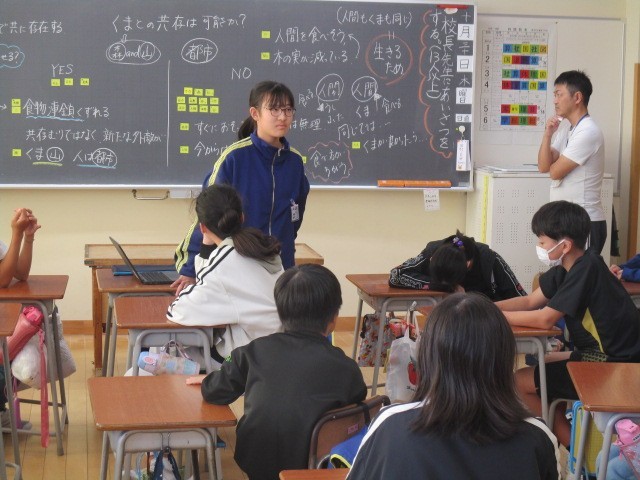 6年生は、5時間目に討論をしていました。テーマは、「熊と共存できるか」です。