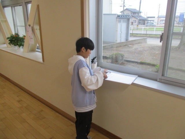 ファミリー班への伝言板にメッセージをかいている6年生もいました。