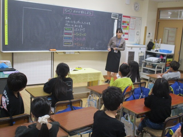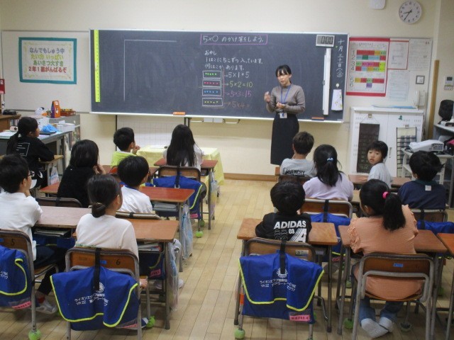 2年生の1時間目は、算数科の学習でした。5×4について、5を何回たすのか考えていました。