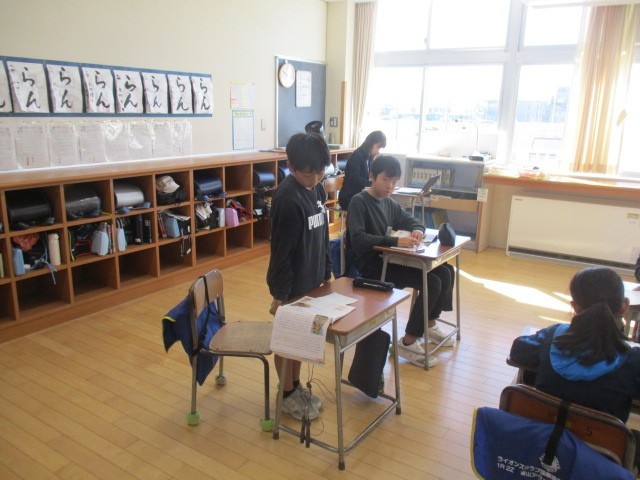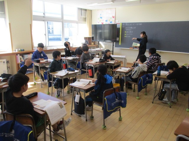 4年生の2時間目は、道徳科の学習でした。合掌造りの共同作業の資料を読んでみんなで話し合っていました。
