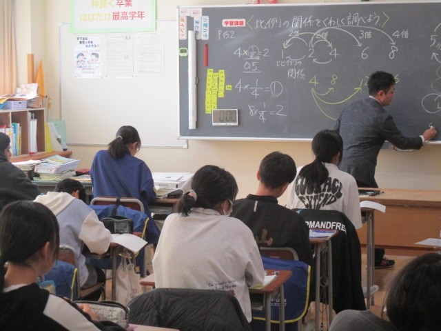 6年生の3時間目は、算数科の学習でした。「比例」の関係について考えていました。