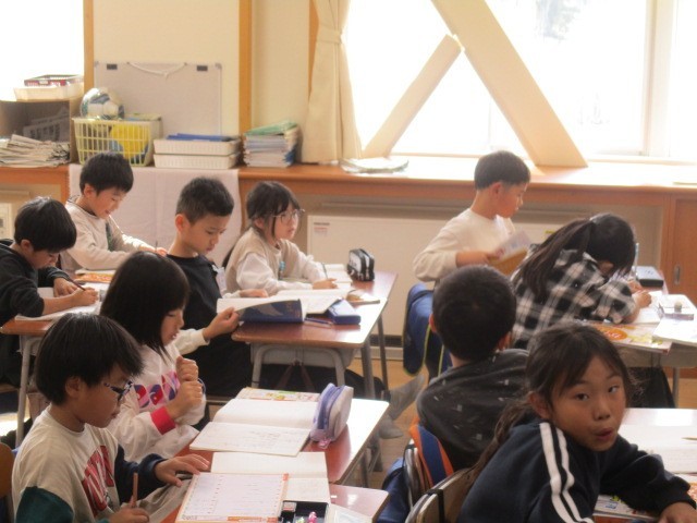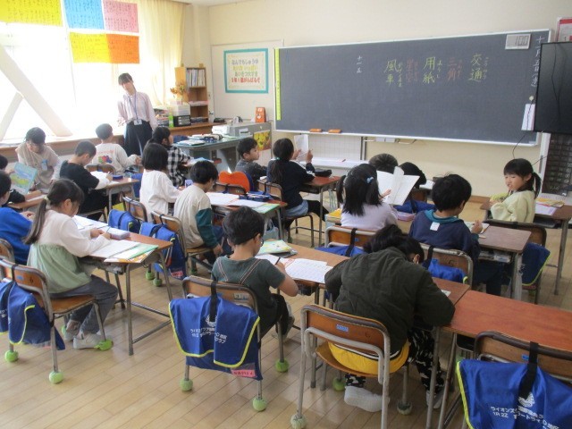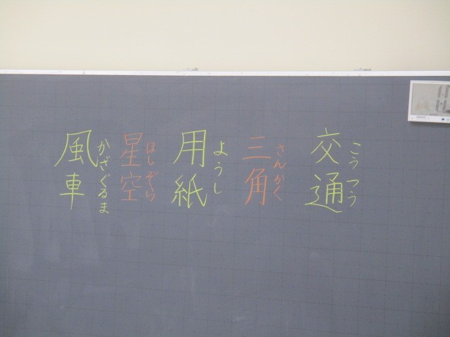 2年生の3時間目は、国語科の学習でした。「交通」「三角」「用紙」「星空」「風車」という漢字の練習をしていました。