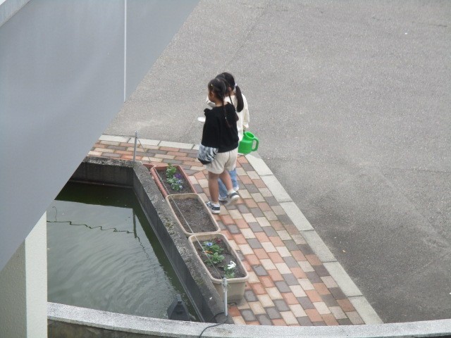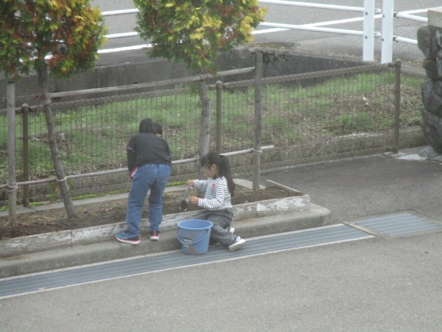 今日もたくさんの子供たちが花の世話をしてくれていました。