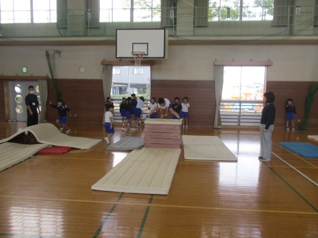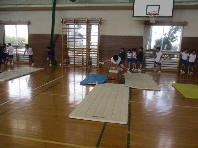 3・4年生の3時間目は、体育科の学習でした。体育館でとび箱の練習をしていました。