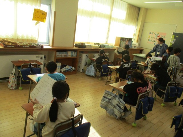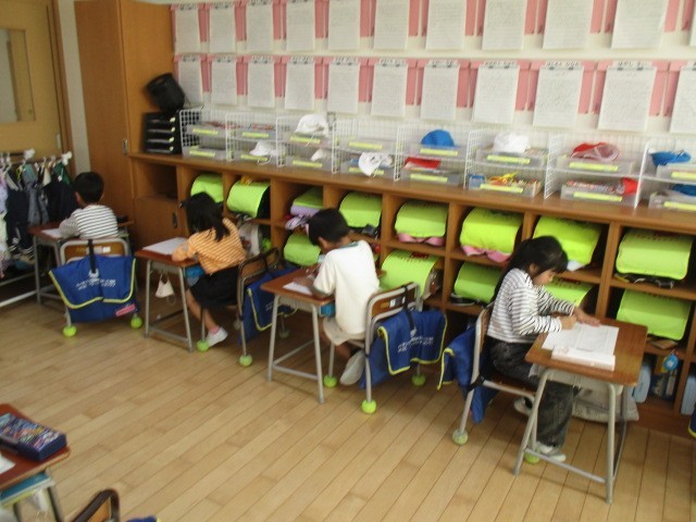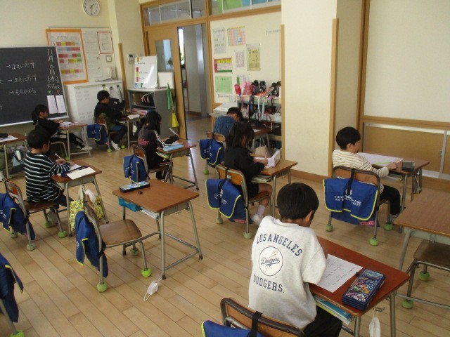 1年生は、5時間目にテストやプリント等をしていました。担任の先生が出張だったので、自習をしていました。