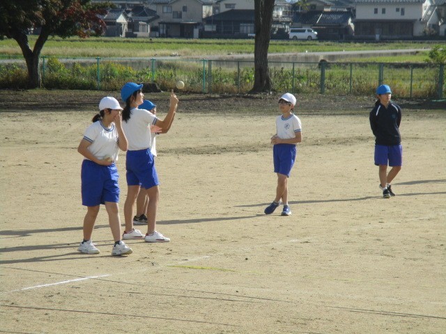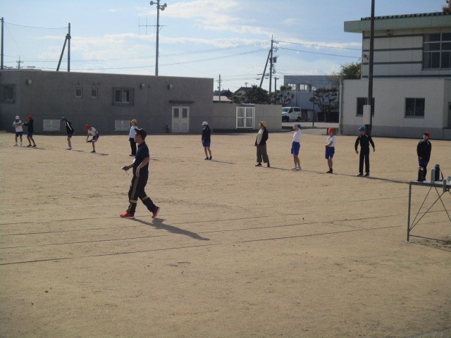 6年生の5時間目は、体育科の学習でした。ソフトボール投げの練習をしていました。