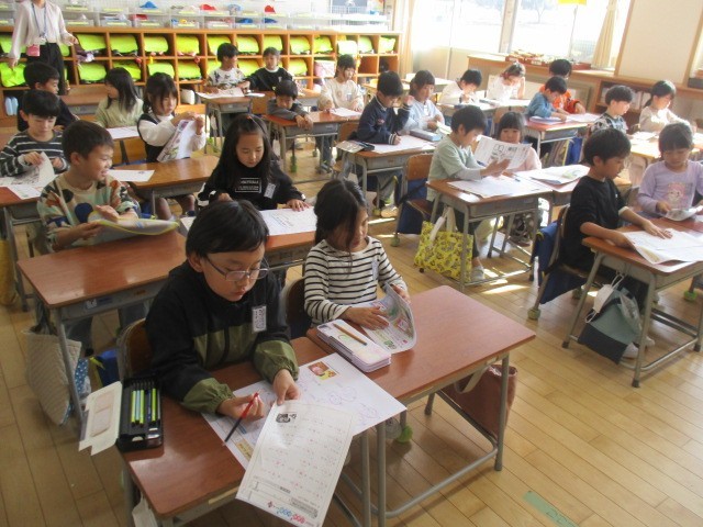 1年生は、5時間目にテストが返されていました。返された後、直しをしていました。