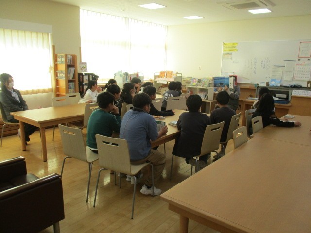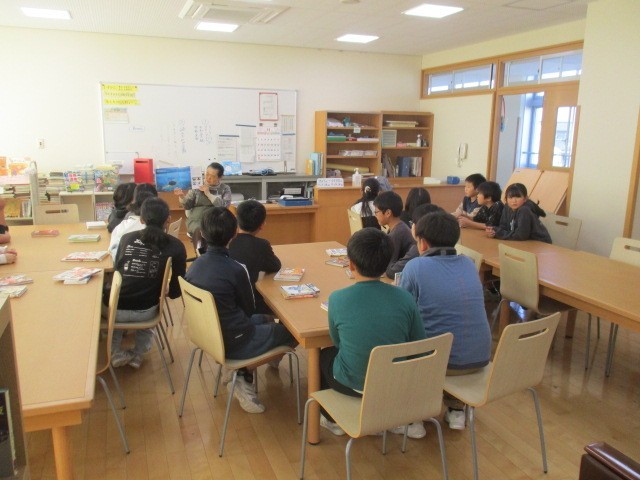 5年1組は、5時間目に図書室にいました。司書による読み聞かせを聞いていました。