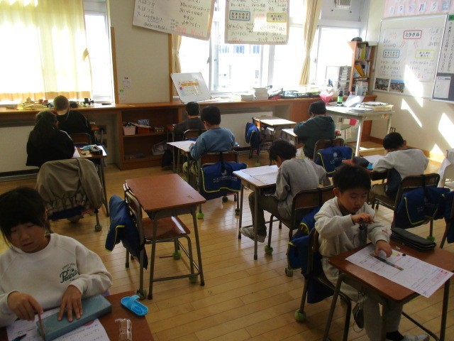 3年生の3時間目は、算数科の学習でした。「円と球」のテストをしていました。