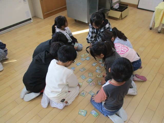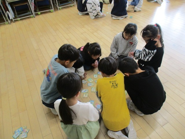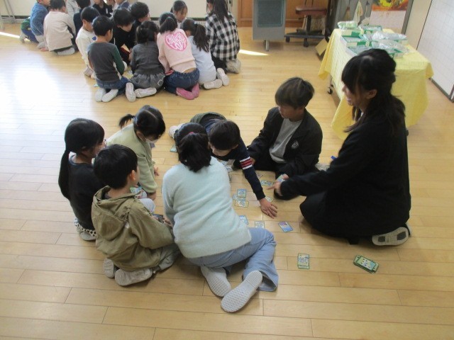 1・2年生は、1時間目に一緒にかるたをしていました。
