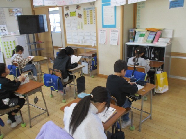 3年生の1時間目は、社会科の学習でした。「店ではたらく人」のテストをしていました。
