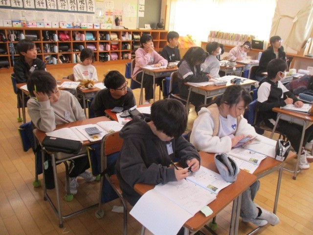 5年2組の1時間目は、算数科の学習でした。「平均」のもとめかたについて考えていました。