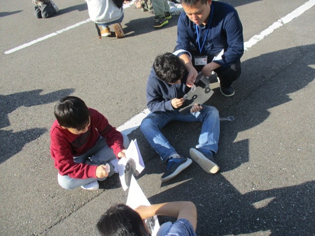 3年生の学習参観は、理科の学習でした。虫めがねで太陽の光を集めて紙をこがす実験を親子でしていました。なかなか太陽が顔を出さなくて時間がかかりましたが、黒くした紙を焦がすことができてよかったですね。