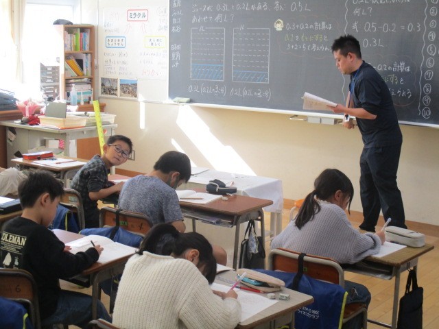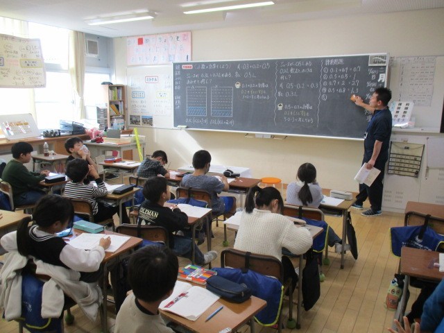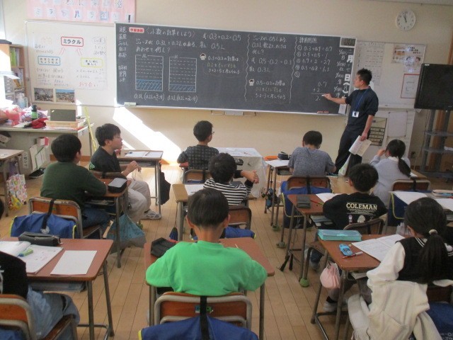 3年生の3時間目は、算数科の学習でした。小数のたし算とひき算の練習をしていました。