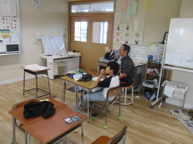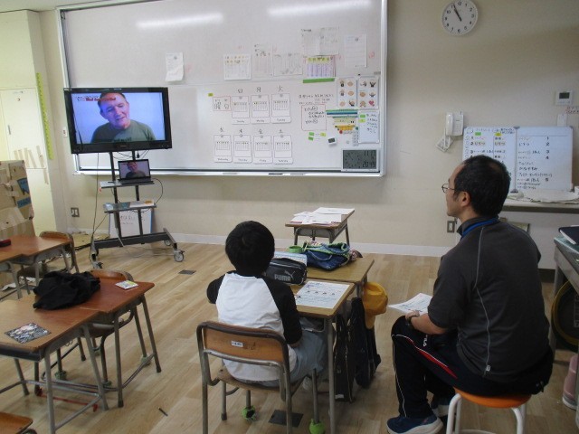 つばめ野級2組の5年生の3時間目は、外国語科の学習でした。動画を見ながら発音を考えていました。
