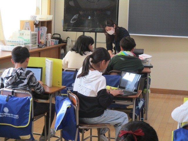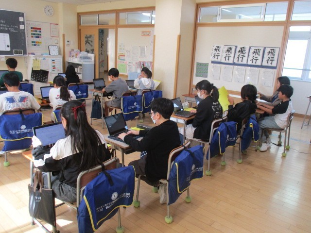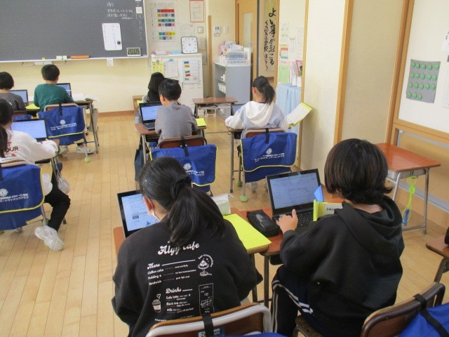 5年1組の5時間目は、総合的な学習の時間でした。「米づくり」について、調べ活動を進めていました。