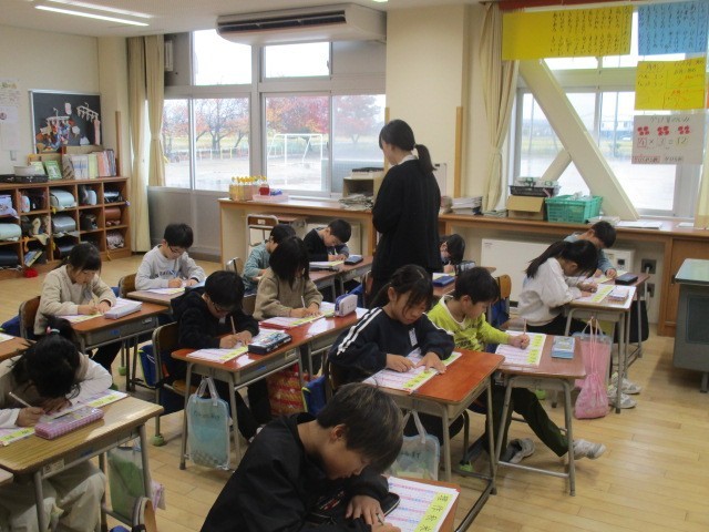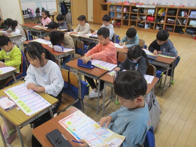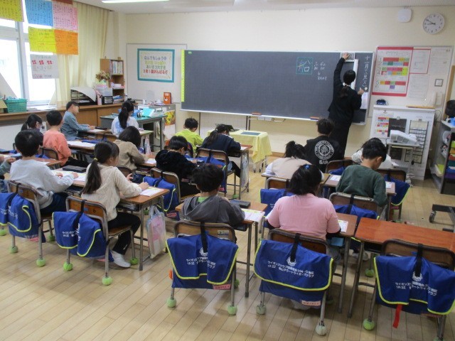 2年生の1時間目は、体育科の学習でした。「船」という漢字の練習をしていました。
