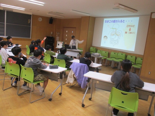 4年生の3時間目は、「禁煙教室」でした。富山市北保健福祉センターから講師の先生にきていただいて、いろいろと教えていただきました。ありがとうございました。