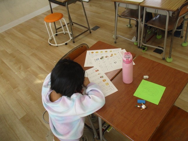 つばめ野級2組の3時間目は、国語科の学習でした。言葉についてのプリントを進めていました。