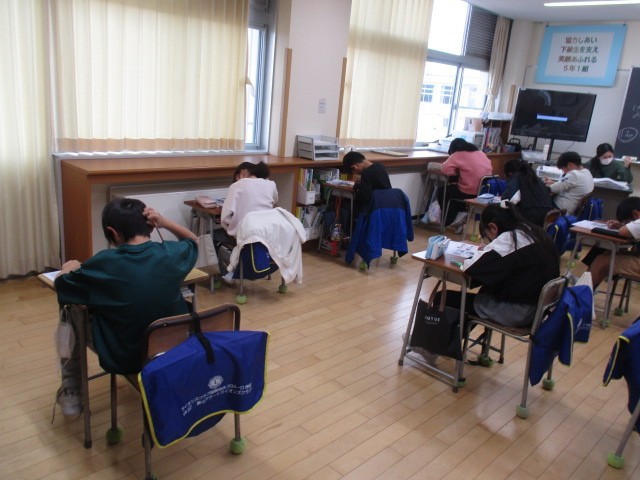 5年1組の5時間目は、社会科の学習でした。工業のところのテストをしていました。