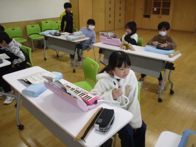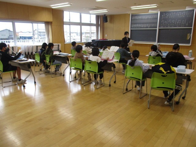 5年2組の5時間目は、音楽科の学習でした。音楽室で旋律づくりをしていました。