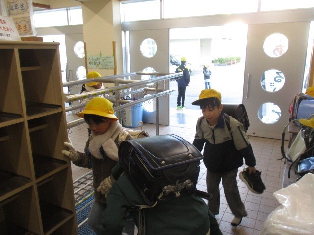 今朝の児童玄関の様子です。お日様がさしていて気持ちのよい朝です。子供たちの挨拶も元気です。