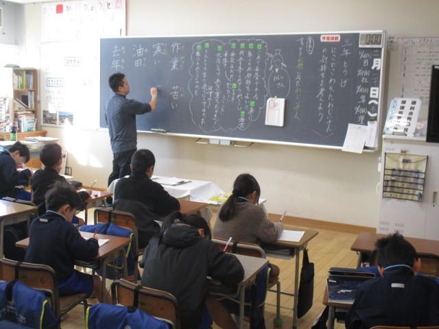 3年生の1時間目は、国語科の学習でした。「苦い」「苦しい」等、漢字練習をしていました。
