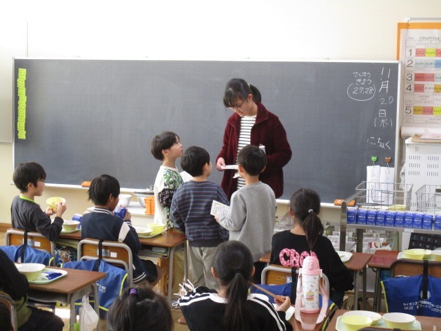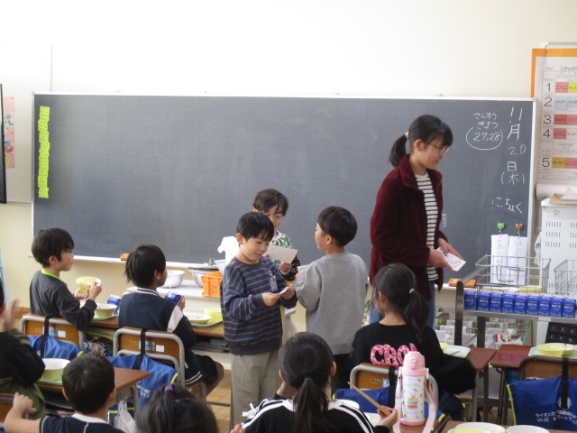 図書委員会からのお昼の放送で、10月から月間で一番本を借りた冊数の多い人のベスト5を表彰することになったそうです。10月は、8冊借りた1位の人が3人、7冊借りた4位の人が3人いたそうです。1年生教室と3年教室に行ってみると3人ずつ図書委員会の委員長さんから賞状を受け取っていました。あめでとうございます。11月もするそうです。誰がベスト5に入るか楽しみですね。