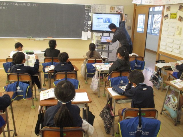 3年生の5時間目は、社会科の学習でした。めんたいこ工場について、資料を見ながら考えていました。
