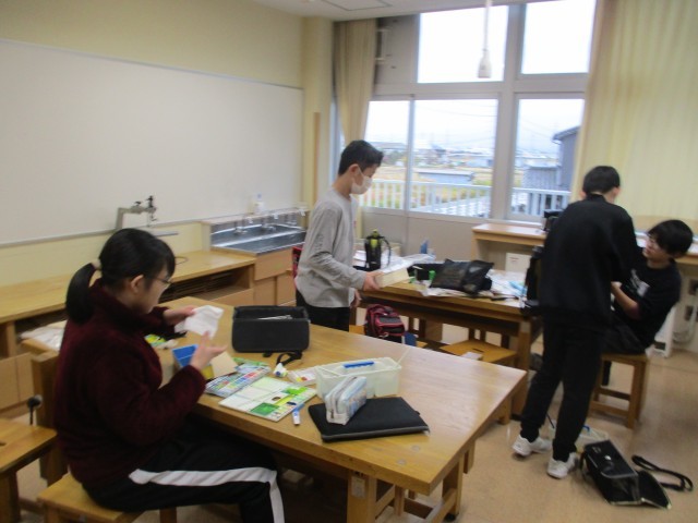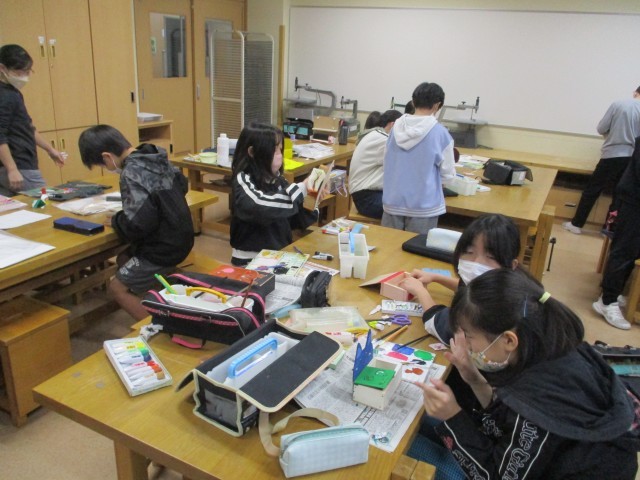 6年生の2時間目は、図工の学習でした。のこぎりや電動糸のこぎり等で切った板を使って、作品をつくっていました。今日はほとんどの子供たちが仕上げに入っていました。