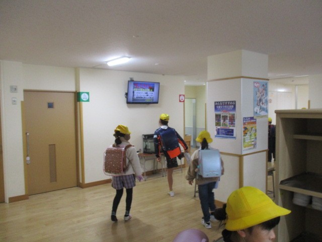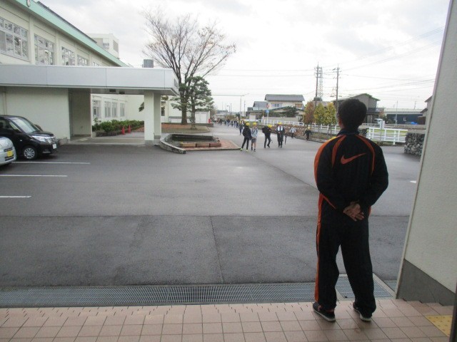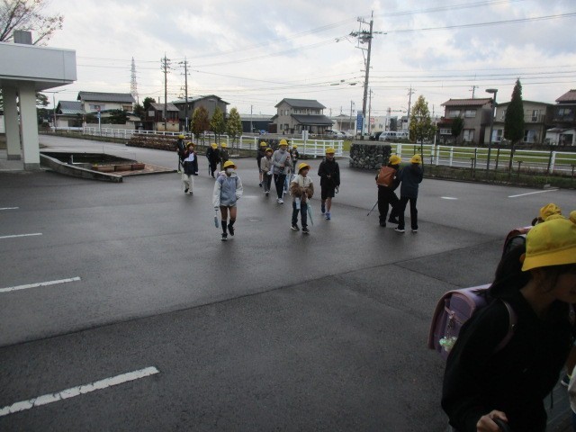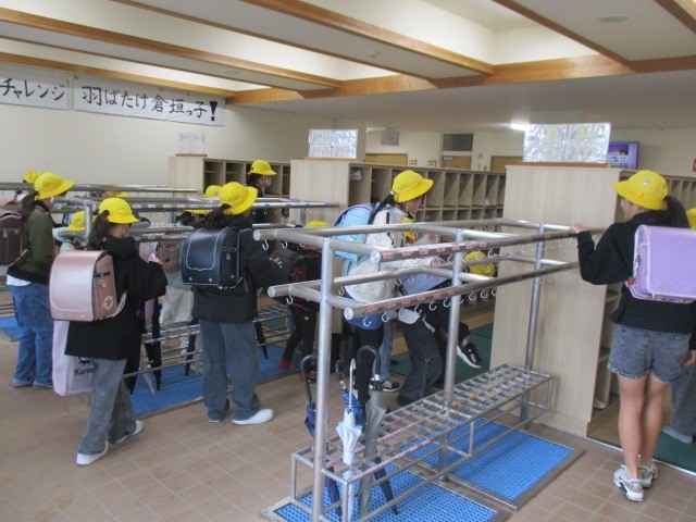 今朝の児童玄関の様子です。曇り空です。子供たちが元気に登校してきました。