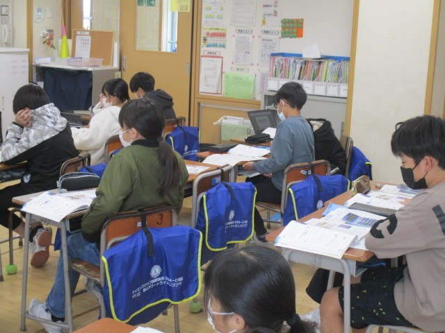 5年2組の3時間目は、算数科の学習でした。数直線をかいて考えていました。