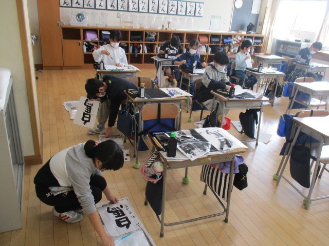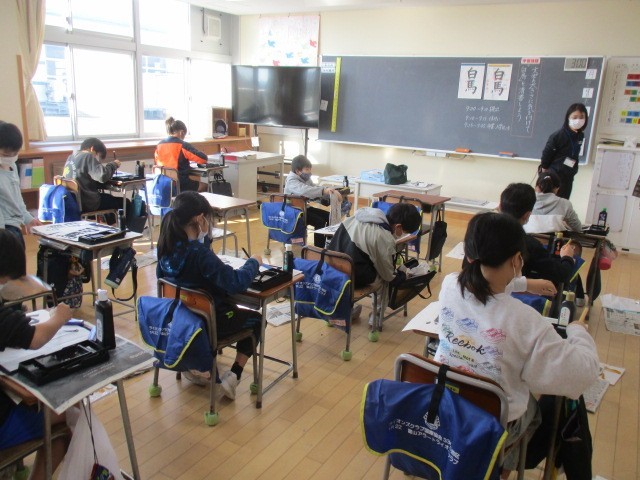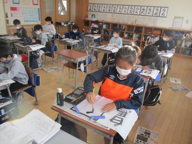 4年生の1時間目は、書写の学習でした。「白馬」という文字をかいていました。