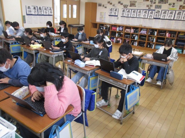 5年1組の3時間目は、国語科の学習でした。アンパンマンの勇気というお話を読んで考えていました。