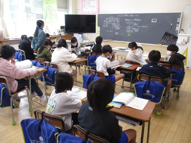 5年2組の3時間目は、算数科の学習でした。平行四辺形の面積について考えていました。