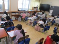 1年生の1時間目は、体育科の学習でした。チームごとに鬼がタッチしているみたいです。
