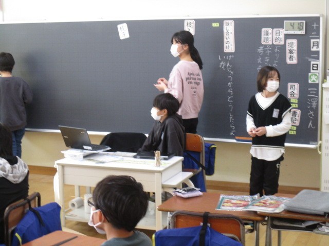 5年2組の5時間目は、学級会の時間でした。みんなで話合いを進めていました。
