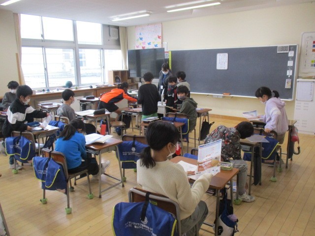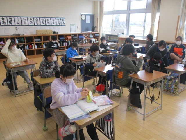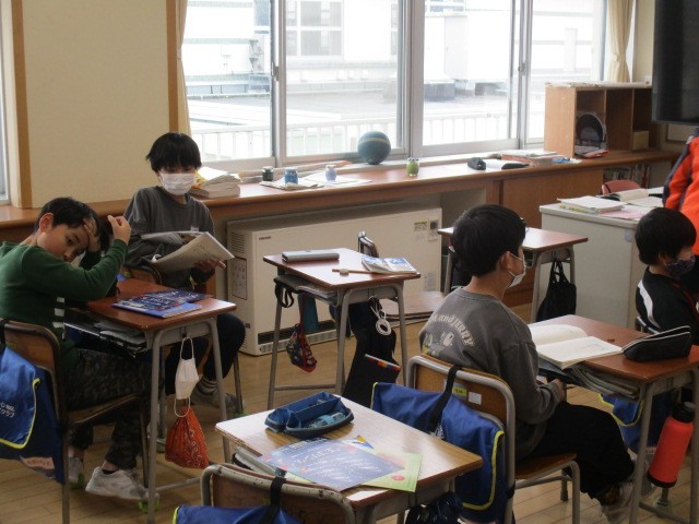 4年生は、5時間目に帰りの準備をしながら、スキー学習の話をしていました。