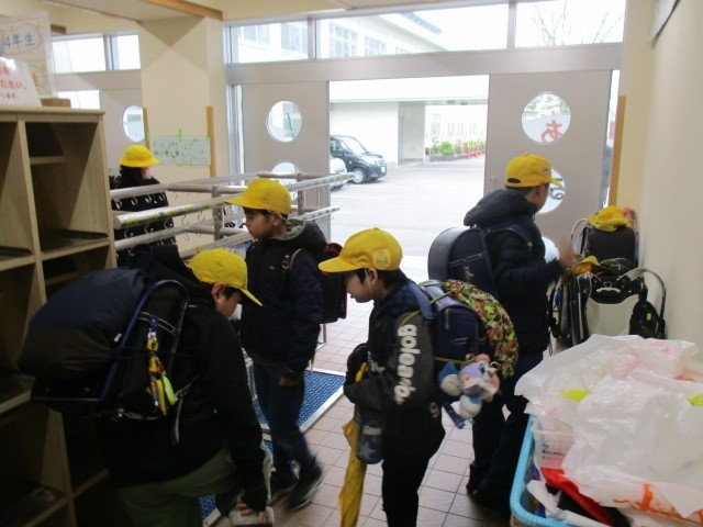 今朝の児童玄関の様子です。子供たちが元気に登校してきました。