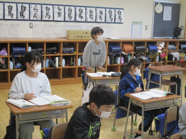 4年生の2時間目は、算数科の学習でした。分数の練習問題を解いていました。