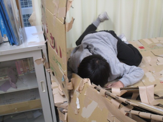 つばめ野級2組の1時間目は、図画工作科の学習でした。絵を描いたり、段ボールハウスをつくったりしていました。