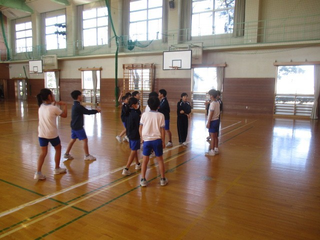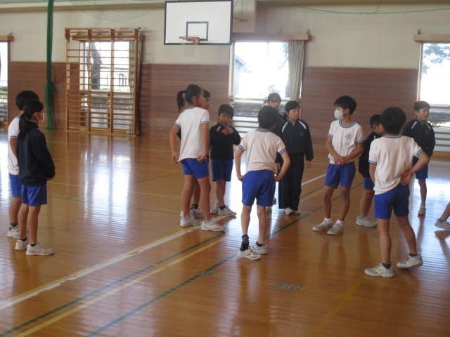 4年生の3時間目は、体育科の学習でした。チーム分けをしていました。