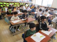 1年生の3時間目は、音楽科の学習でした。「あなたにありがとう」という卒業式で歌う歌を覚えていました。
