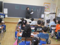 1年生は、3時間目に「ふくわらい」をつくっていました。自分の顔のふくわらいをつくっていました。