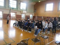 今朝の児童玄関の様子です。雪です。スキー場に雪が積もるのはうれしいですが、あまり降り続くのも…。明日、スキー学習ができますように…。子供たちが元気に登校してきました。
