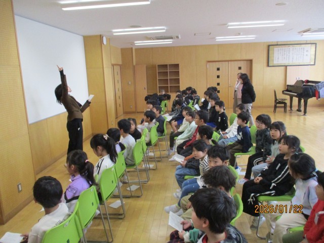 1年生と3年生の3時間目は、音楽の学習でした。卒業式の在校生の歌を一緒に練習していました。