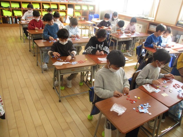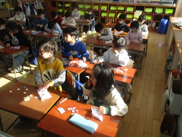 1年生の5時間目は、算数科の学習でした。算数セットのお金を出して数えていました。