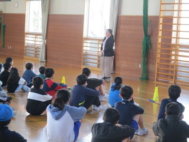 2月の避難訓練を行いました。休み時間中に家庭科室から出火する想定で体育館に避難しました。落ち着いて行動している子供たちが多かったです。ハンカチで口を守っていない子供もずいぶん少なくなりました。