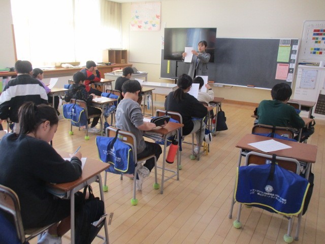 4年生は、5時間目に明日の卒業を祝う集会で6年生に見せる出しものの練習をしていました。明日、じょうずにできるといいですね。
