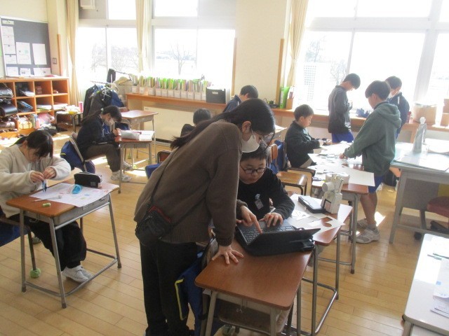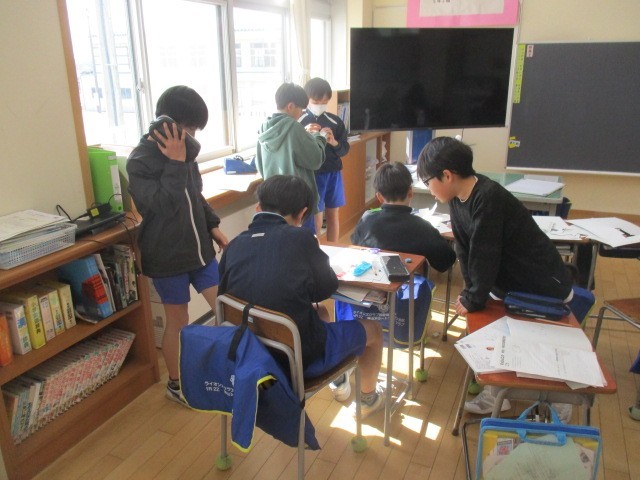 5年2組の5時間目は、算数科の学習でした。角柱や円柱のミッションを解いていました。